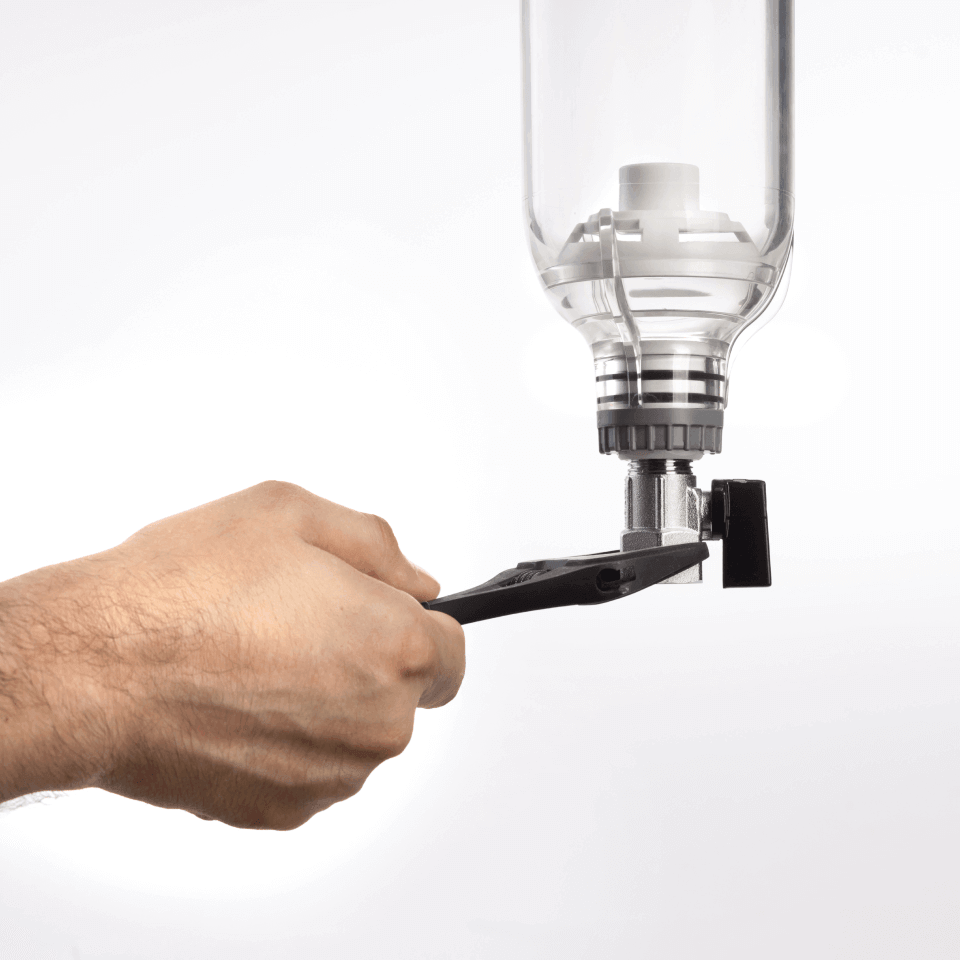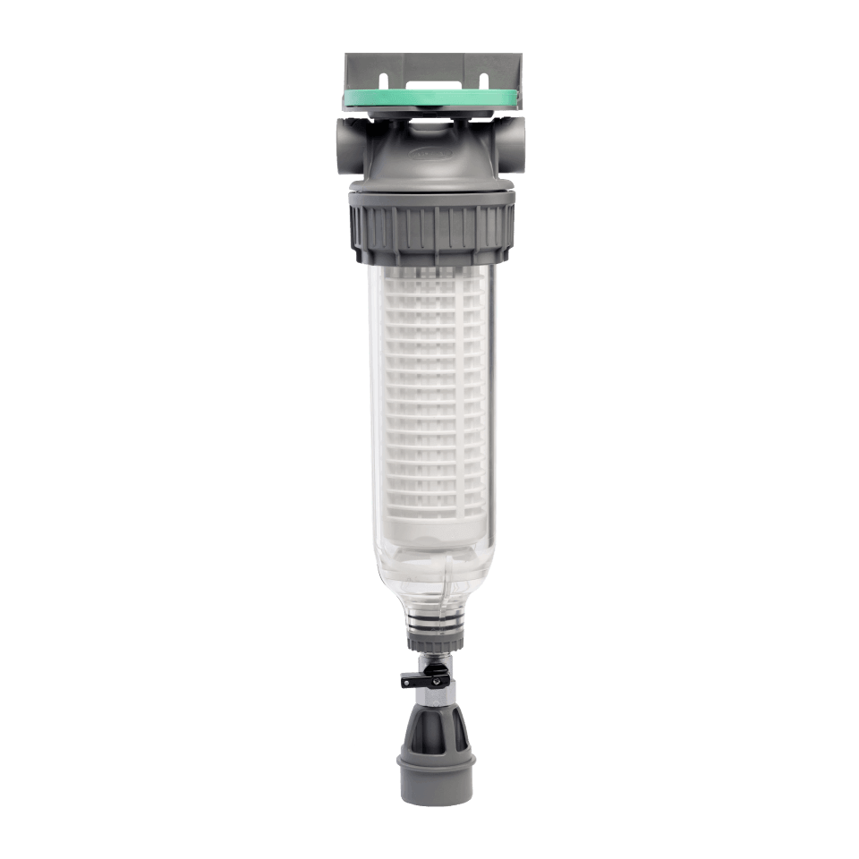 - Întreținere: verificați periodic bolul pentru acumularea sedimentelor; când nivelul vizibil de murdărie crește, închideți alimentarea cu apă, deschideți drain-ul pentru a golit sedimentele, apoi demontați bolul cu cheița integrată pentru înlocuirea cartușului.