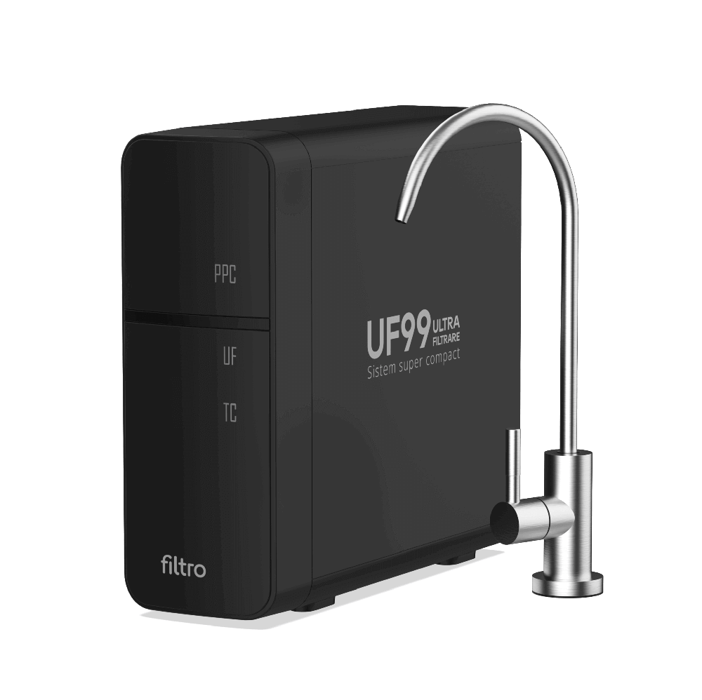Sistemul integrează o etapă de purificare a apei, care îmbunătățește gustul și mirosul, făcând apa mai plăcută pentru băut și gătit. În plus, prin sterilizare, apa este tratată pentru a elimina riscurile microbiologice, oferind un plus de siguranță în utilizarea zilnică, mai ales în cazul rețelelor vechi sau al variațiilor de calitate ale apei.